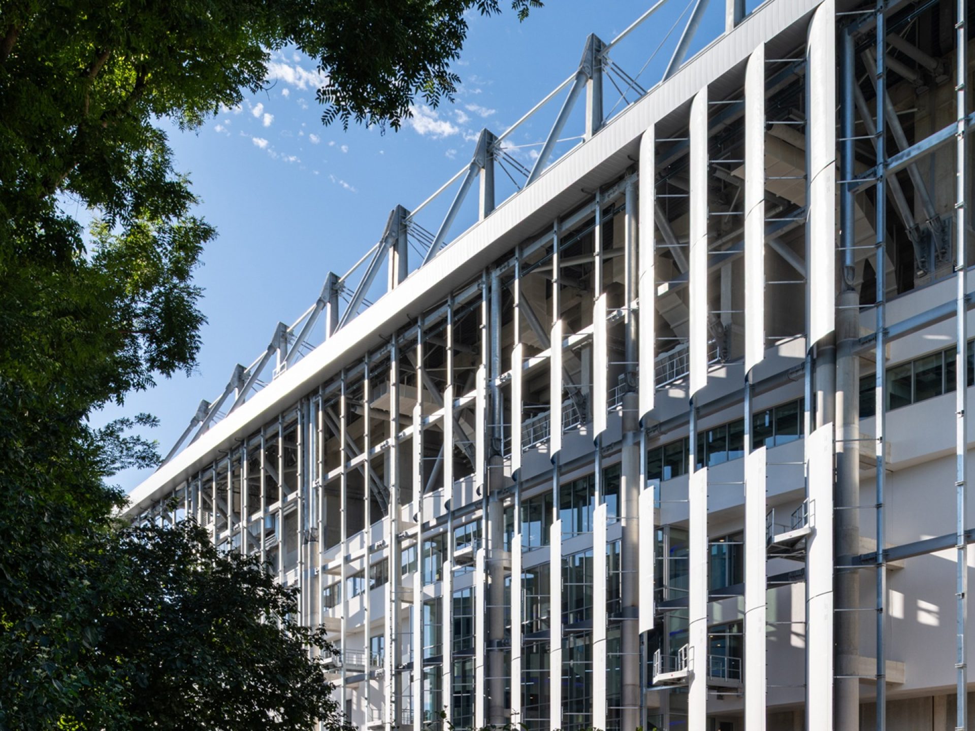 As part of the renovation of the stadium, the new 11,712 capacity South Stand design – created by Populous and local architect Rey-de-Crécy – involves cutting fuselage sections from 30 decommissioned Airbus A340 aircraft. These are then transformed to become 196 panels that create a unique sun shading system or ‘brise soleil’ that covers a total surface of 4050 m² across the whole south-facing façade of the stadium.