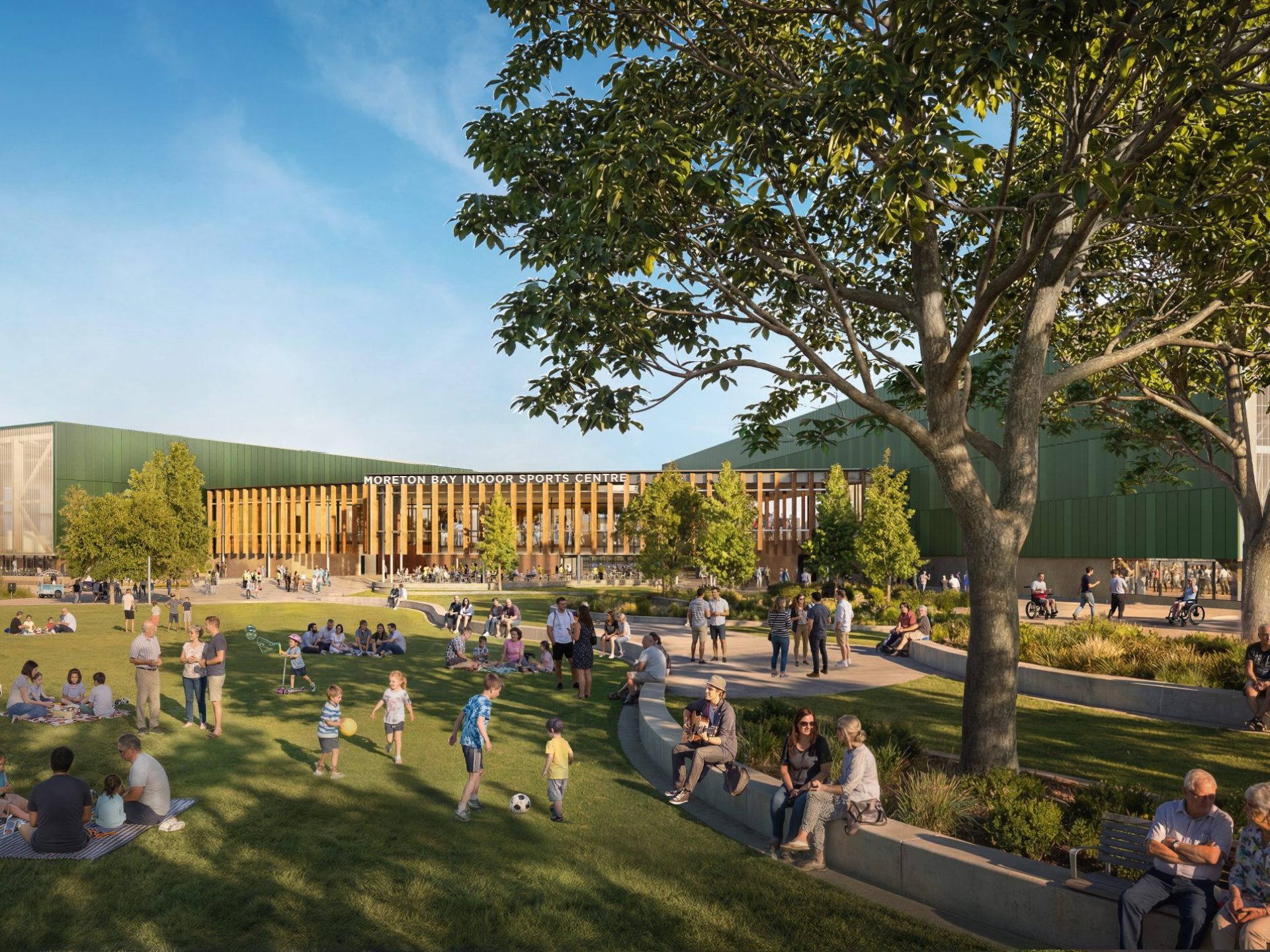 In addition to the indoor courts, the Centre will include a café, athlete amenities and outdoor green space, positioning it as a central destination within the Moreton Bay Central precinct and a key piece of social infrastructure for the growing region.