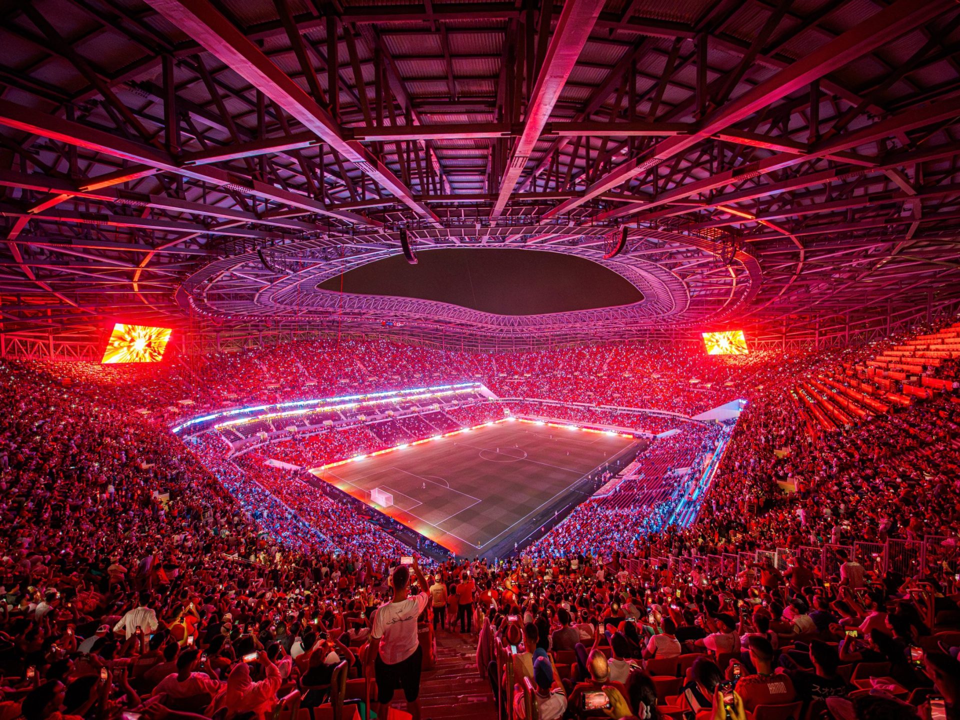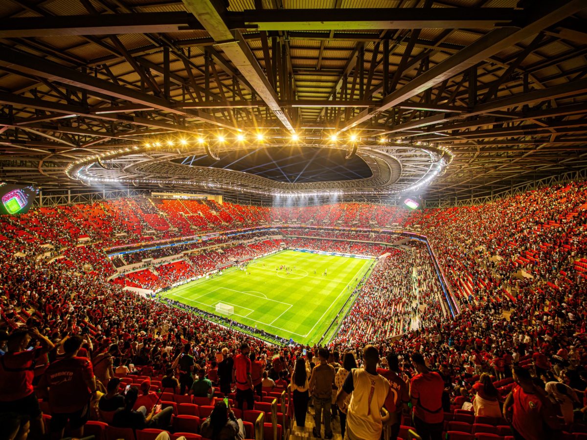 The 68,700-capacity Prince Moulay Abdellah Stadium features a unique parametrically-designed LED Façade, while the design of the bowl places a premium on acoustics and atmosphere to amplify the passion of the Moroccan fans, with stands placed as close to the pitch as possible, amplifying crowd energy into a sonic wall.