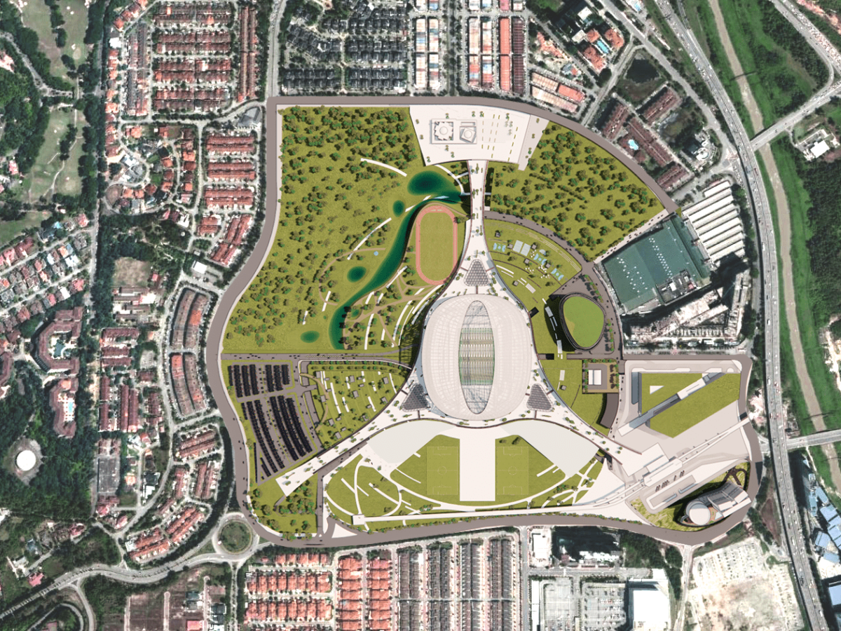 This is something that has been a key focus of the Shah Alam Sports Complex in Malaysia where iconic heritage combines with modern, inclusive elements to meet community needs. The focal point of the new complex, which includes a 45,000 seat stadium, will be a 310,000 square meter green area featuring a botanical garden, running and cycling paths, and walkable spaces. Commercial spaces and community facilities from the northeast will provide further convenience for neighboring residents while a new LRT station will be built on the southeast corner of the site, providing sports fans and the community with direct access to public transport. A second mosque will also be built to the north of the stadium.