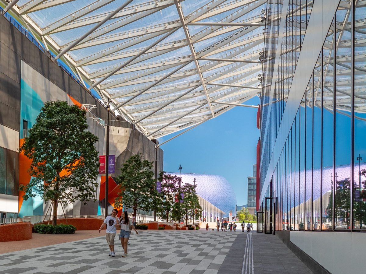 28ヘクタールのカイタック・スポーツ・パークの中心に位置するこのアリーナは、MTRカイタック駅およびソンウォントイ駅に直結し、歩行者に配慮した「スポーツ・アベニュー」を介して地区全体とつながっています。
