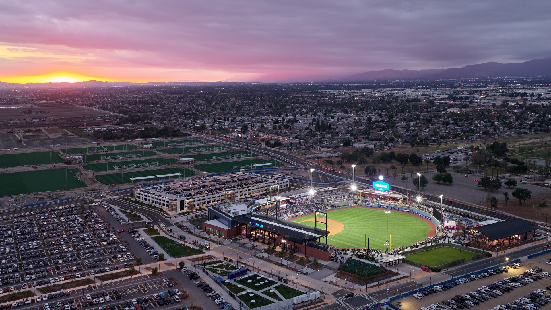 Located just 40 miles from Dodger Stadium, the ballpark is designed to support both player development and fan experience. The facility is outfitted with cutting-edge training and rehabilitation spaces for Dodgers prospects and MLB players on assignment, while offering a broad range of fan experiences—from family-friendly zones to social and premium hospitality spaces.