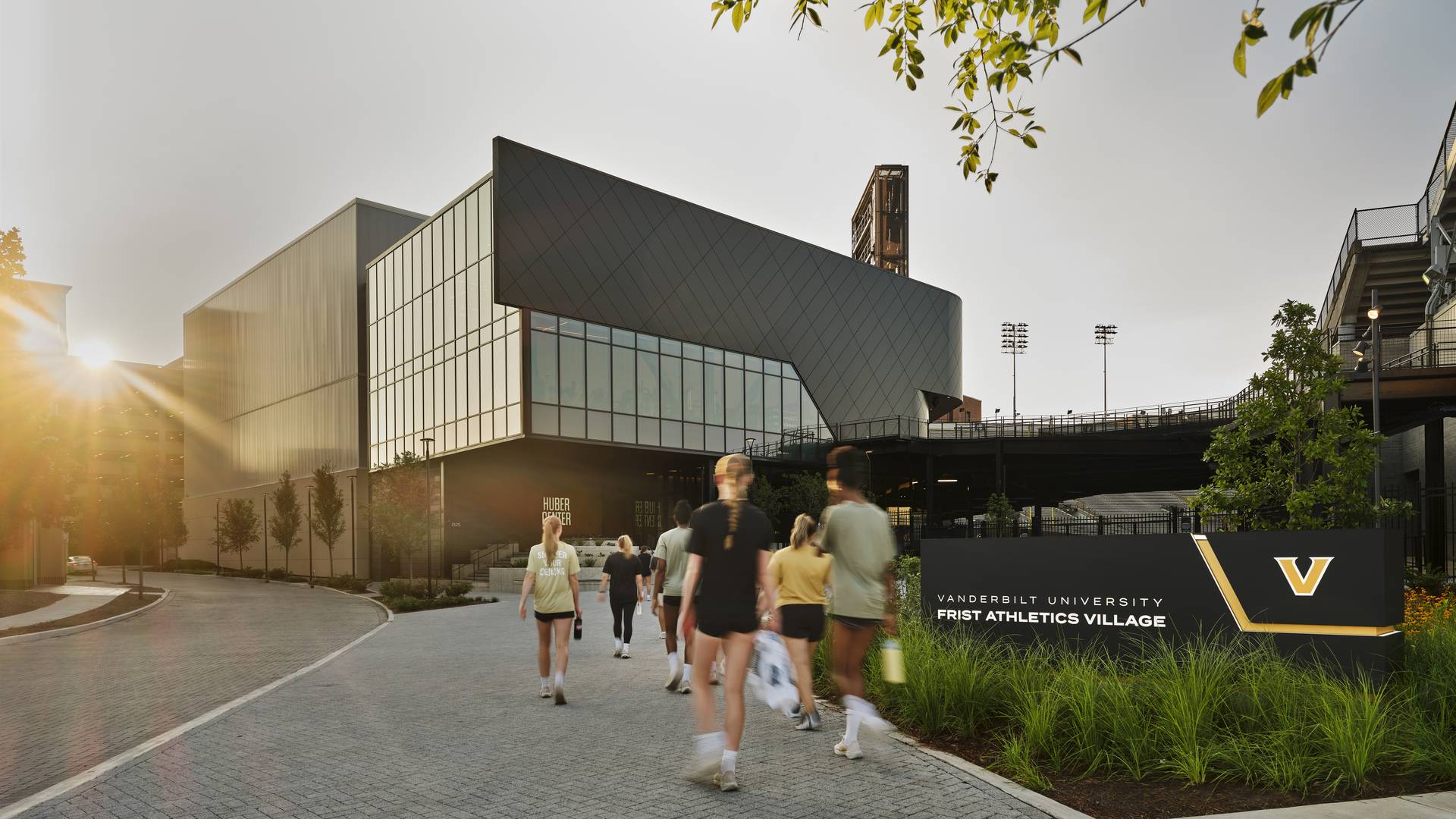The exterior balances tradition and modernity, with lower levels clad in Vanderbilt’s limestone and crab orchard stone and the upper levels transitioning to more contemporary materials and expansive glazing. This duality is intentional, creating a visual narrative that ties Vanderbilt’s past with its aspirations for the future.